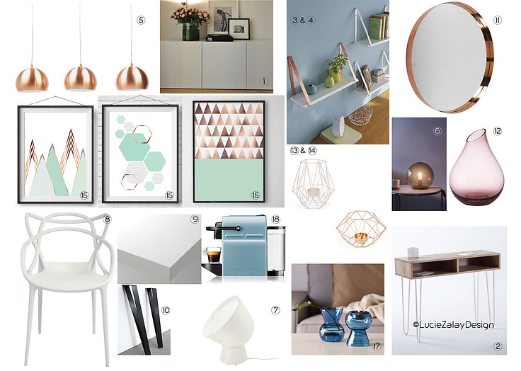 Pour l'ambiance générale, nous sommes parties sur quelque chose de chaleureux avec la pose d'un nouveau parquet, rafraîchi par un joli vert d'eau et souligné par des notes de cuivre.